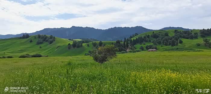 7月26日今天我们走G571路201公里到昭苏县再走伊昭公路到伊宁市,G571公路在修路我们一路颠簸来到昭苏县的伊昭公路入口,结果伊昭公路修路封路了,我们顿时傻眼了,打听边上一伙当地人说县城外面有条小路从野狼谷可以绕进去,我们根据当地人说的找到了那条小路,没有想到野狼谷景色非常美,我们比较顺利的进入伊昭公路,一路基本是盘山公路,一边靠山另一边风景优美,我们边走边停一直到下午7:30才到伊宁市。