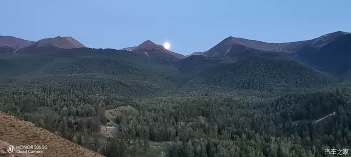 7月21日,头一天打算订禾木村或者贾登峪的民宿,一看禾木村和贾登峪民宿非常火爆还贵的离谱,网上看到白哈巴村民宿还相对便宜不少,我们临时决定去白哈巴村住一晚看看,白哈巴村本来也是我们的行程之一,进白哈巴村需要提前办理好边防证,一定要从铁热克提乡过边防检查站进去,开车走了149公里的省道来到我们定的民宿,真是比我们想象的好太多了,村子里游客不是很多,原始的小木屋,白哈巴河从村边的小树林穿过,牛儿,马儿悠闲的吃草,民宿老板告诉我们村子对面的山头看日落非常好,我们赶在太阳之前爬到了山顶,远眺山下的村落被金色的阳光包裹着,不时有袅袅的炊烟升起,我坐在山顶心无杂念的放空自己,此时此刻最适合发呆了,看着美丽的夕阳落下去,东边一轮明月升起,映衬下的山林,木屋格外恬静美丽。