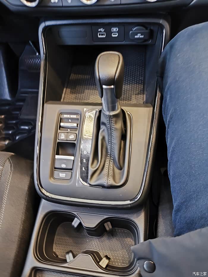 关于混动和纯油内饰的区别,我仔细观察了观察就是中控台这一块儿挡把儿是有明显的区分的。油车的挡把是这种自动挡的档把,而混动车型的话就是那种按键型的方式。在内饰其他方面看上去好像是都一样的。不过我更喜欢这个油车的挡把,因为这个用习惯了,看着会比较顺眼。