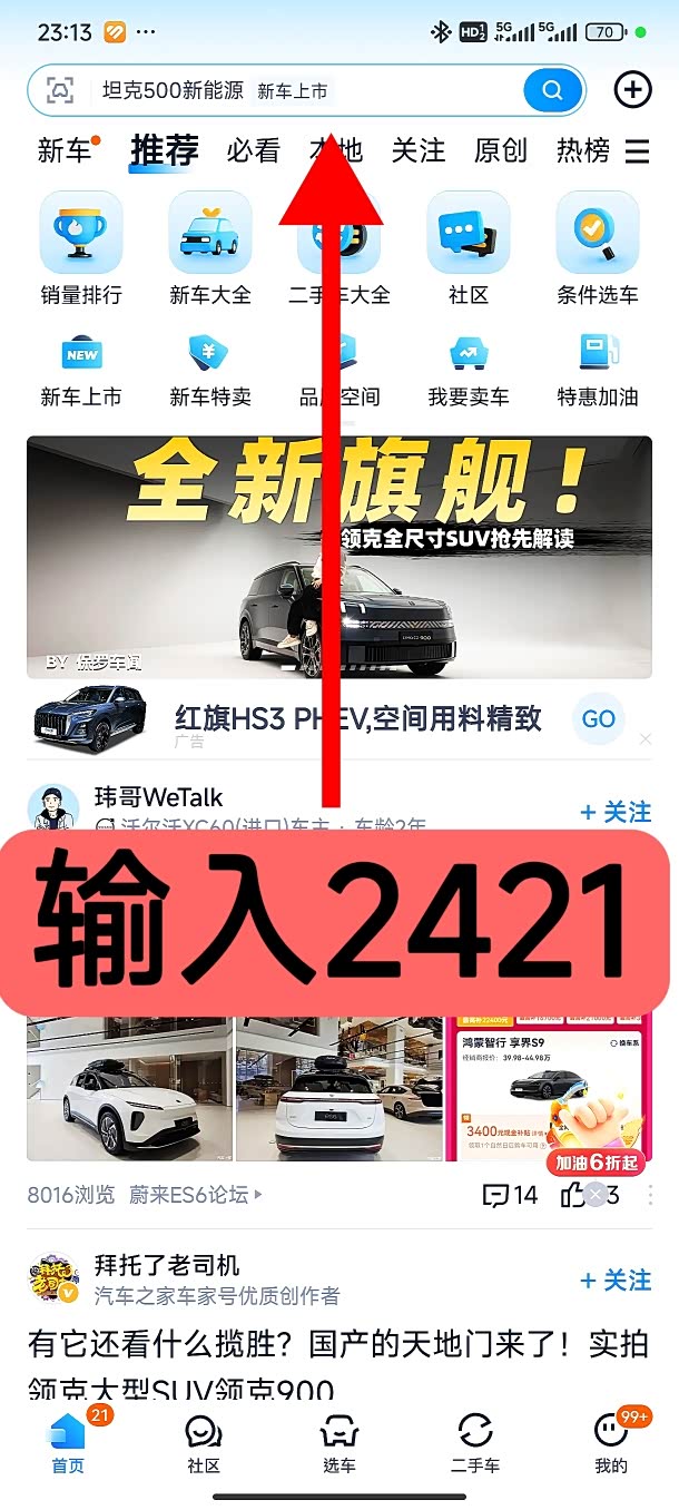 第一步,在汽车之家平台输入2421。