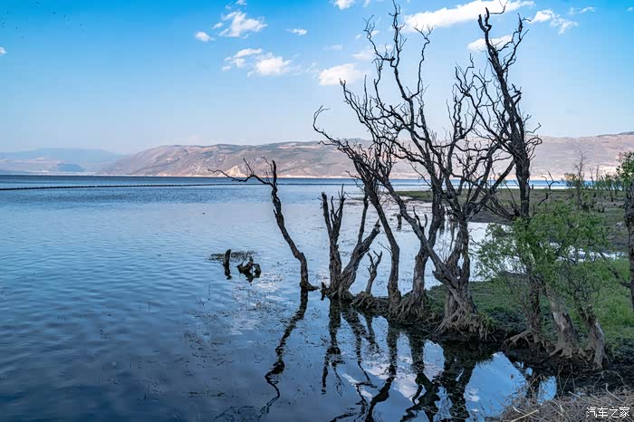 我们离开花海往客栈走,经过的这片水域也是一处网红拍摄地——水中的树,可惜那棵卧在水里的大树可能是被人压断了,被拖走了。
