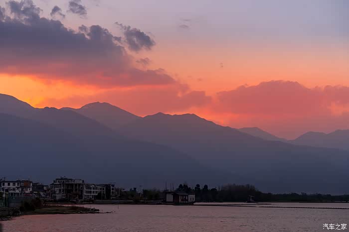 其实拍摄这种古镇全景的最佳位置不在环海东路,而是在通向丽江的大丽高速双廊服务区里。双廊服务区不仅可以吃住还有一个几乎可以拍摄洱海全景的观景台。