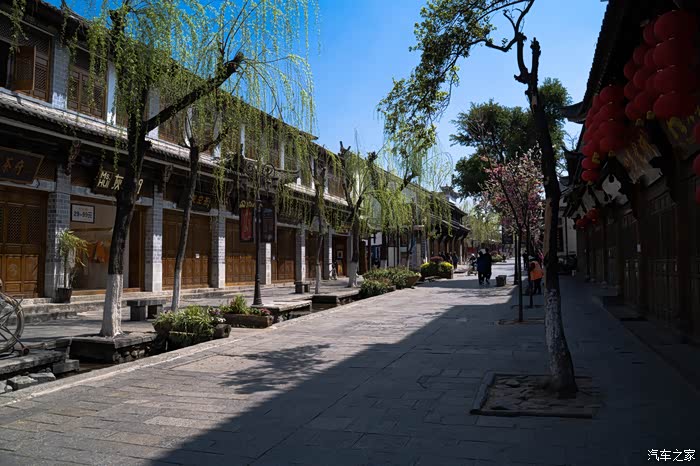 风情街。古镇里的街道大多是石板路,大家入住古镇最好背背包进去,如果拖行李箱的话对箱子的轮子是一个考验。