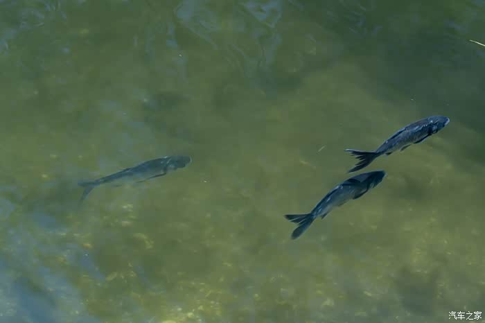 树林边的湖水十分清澈,有鱼随处可见。我家虫虫特别后悔没让我带渔具。