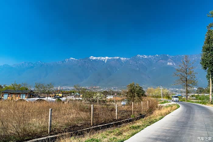 这是从环海西路通向洱海边的一个岔路上看到的苍山景色。