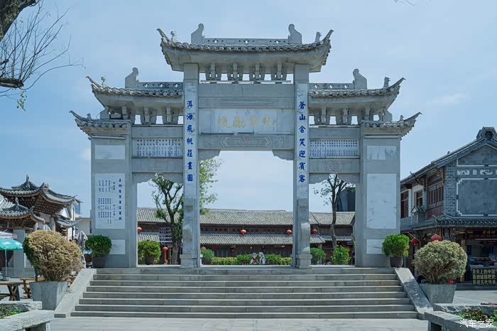 双廊古镇号称是苍洱风光第一镇,是洱海游的一张名片。很多人都说双廊是一个来了就不想走的地方,还有人说双廊是一个适合发呆的地方,更多人说双廊是出大片的地方,既然是这么好的地方我们俩是肯定得去打卡的。双廊位于洱海的东北角,从喜洲古镇出来沿着环海路顺时针走,过了上关镇就到双廊了。双廊镇很大,但自驾游车辆不允许进入,我们给客栈老板打电话,然后老板领着我们在十分狭窄的街道曲里拐弯的找了一个停车场,好像是叫古镇中心停车场,其实这里离古镇中心还是蛮远的。大家自驾过去的时候最好还是先找好适合的客栈,然后客栈的老板、管家会帮你找停车场的,自己瞎闯会很难找到合适的停车场的。现在我们一起进古镇看看: