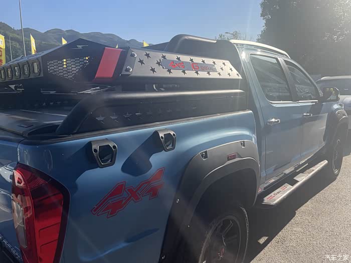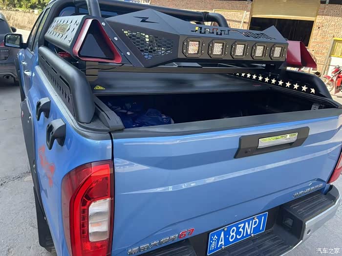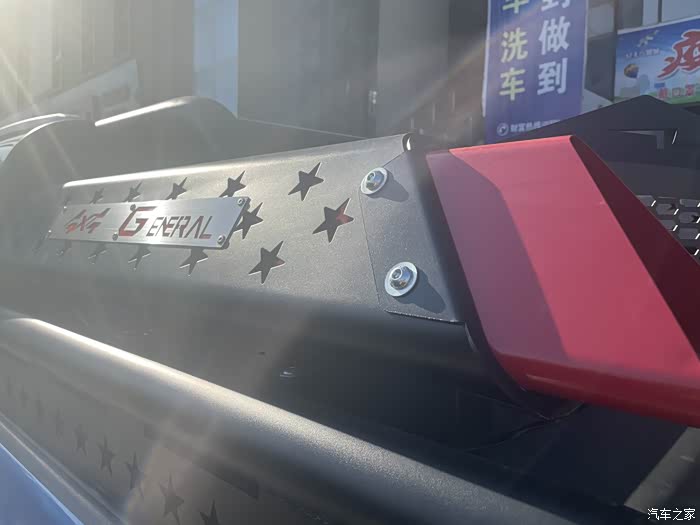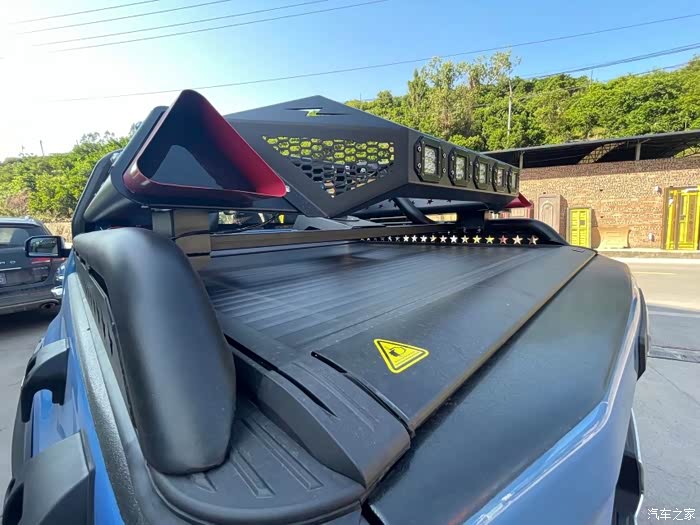在货箱盖上面还加装了一个很酷的五星龙门架,电源还没有接好,电电源接上后面那一排灯是可以亮的,整个龙门架加装上去后感觉这车又上了一个档次。