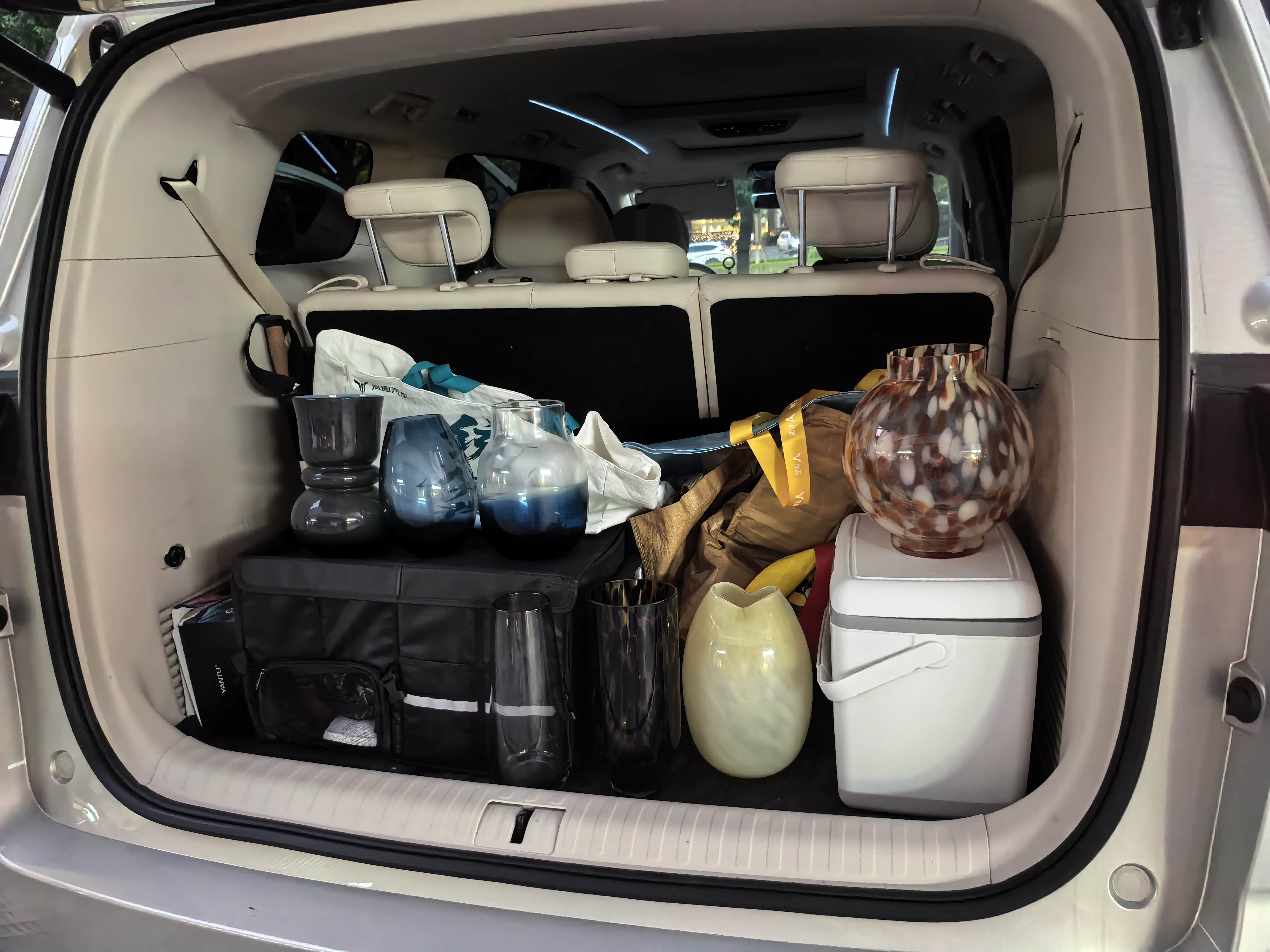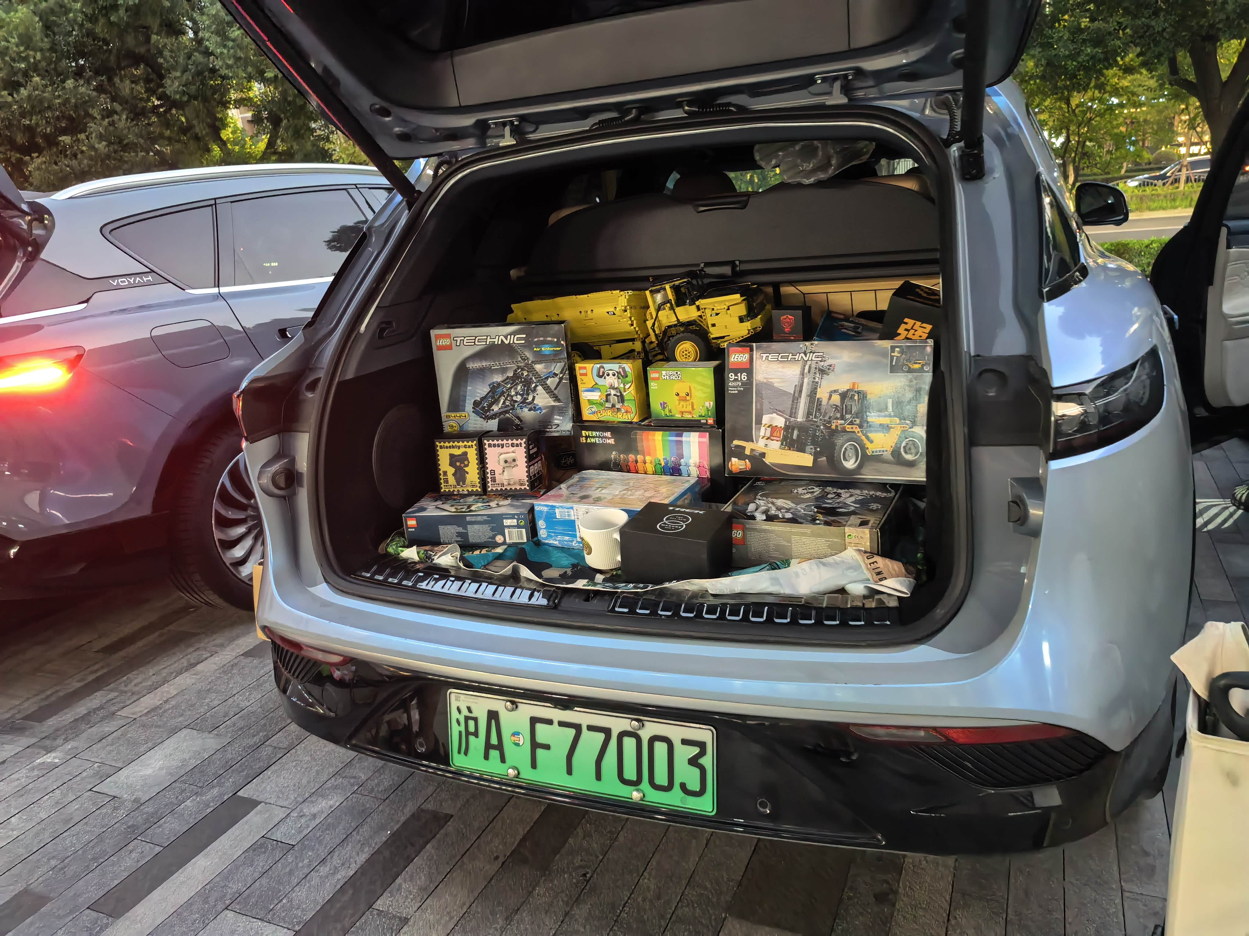 为了今天前一晚我就带着儿子收拾东西。不得不说,梦想家的后备箱是真能装,我儿子小时候的童话书还有玩腻的遥控车和奥特曼玩偶,连我之前闲置的户外水壶、露营小灯,都一起塞进去还留了不少空间。而且后备箱开口高度刚好,我这一米75的个子弯腰拿东西也不用蜷着,比之前开的SUV顺手多了。收拾时我儿子就抓着我的衣角问,爸爸我的奥特曼卖给别人,他们会喜欢吗。我跟他说卖的钱能帮别的小朋友买文具,我儿子立马拿湿巾把玩具擦得很干净,认真的时候就特别可爱。