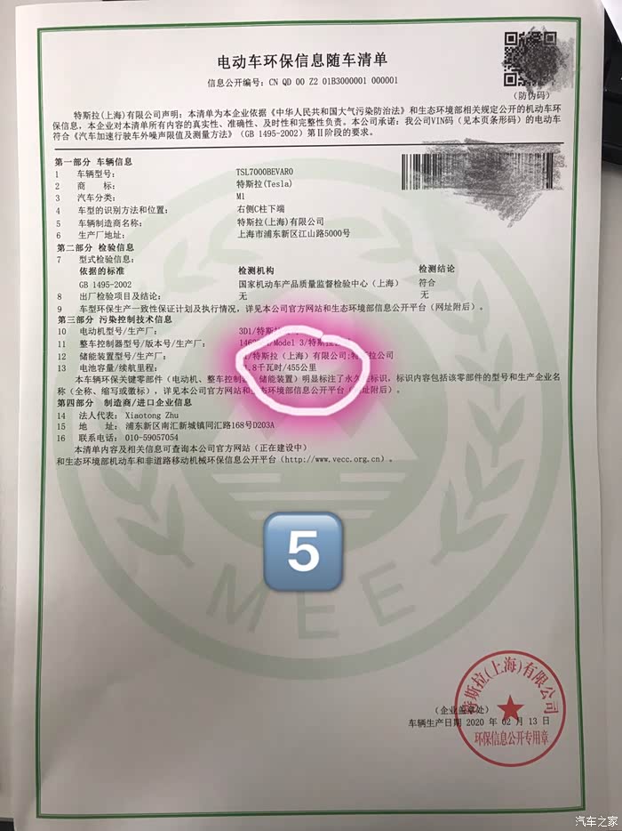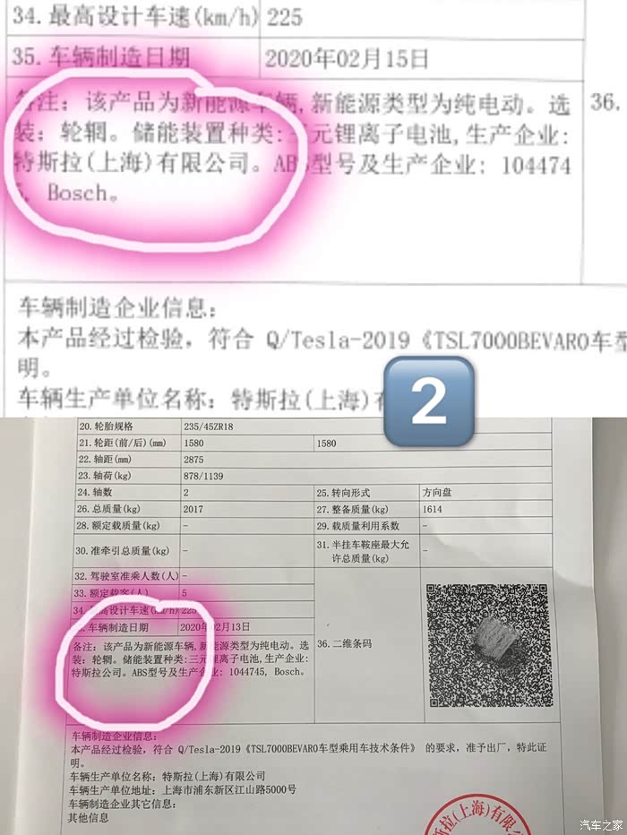 2??车子到达交付中心后,会有合格证。合格证的倒数第二栏 备注 写着特斯拉公司🎉就是松下。写着特斯拉(上海)就是LG。