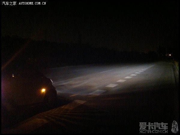 夜行者二代特点,比原车略微发白,照射范围及亮度略微增强。看着很舒服,即可使用在远光也可近光。