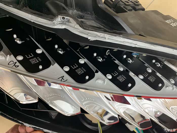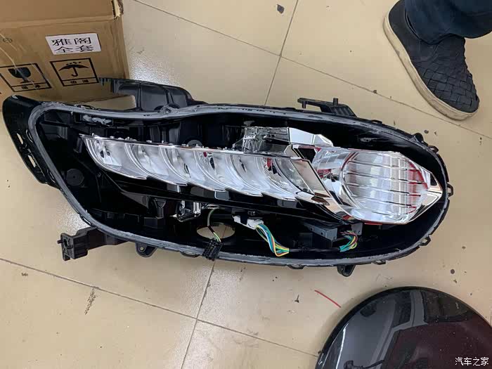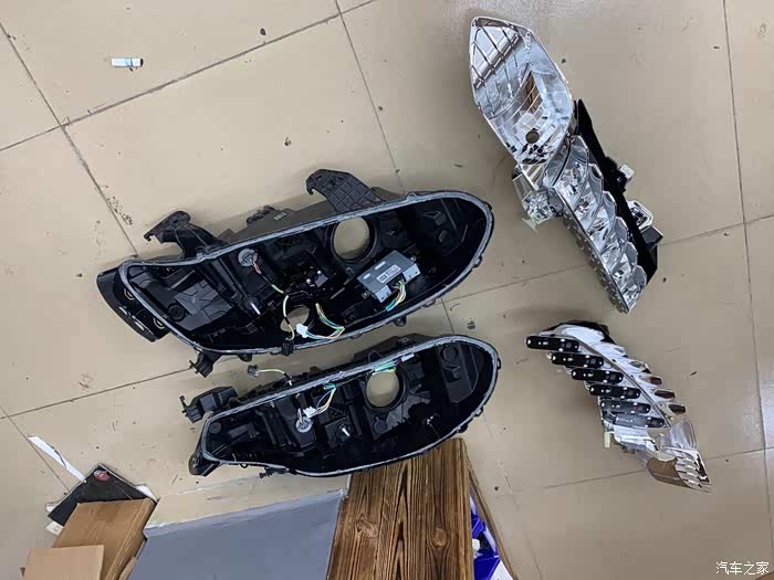 整个大灯总成分解完毕,大灯的透明灯罩和底座,原厂是有热熔胶的,不能硬拆,需要先加热,再撬开~