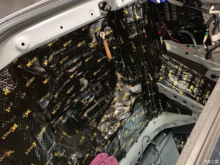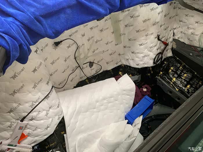 止震板贴好了,开始上棉花咯,上完就隔音做好咯~