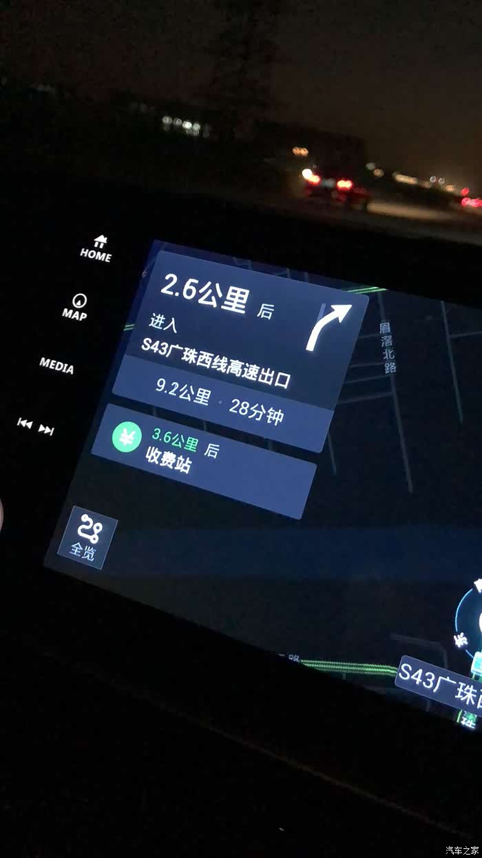 从化之旅结束,起航回家,晚上导航就是方便,自动切换黑夜模式~