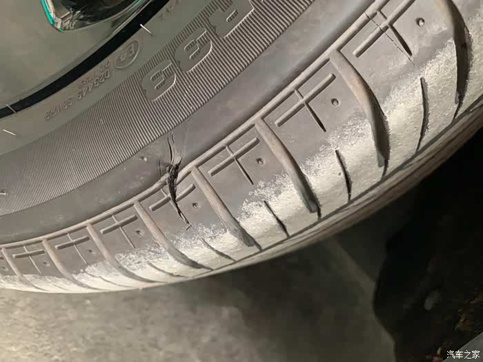 唉,昨天洗车,才发现这么大一个裂口,也不知道怎么弄的,还好及时发现了,直接换胎了只能,师傅说再跑磕到石头就爆了~