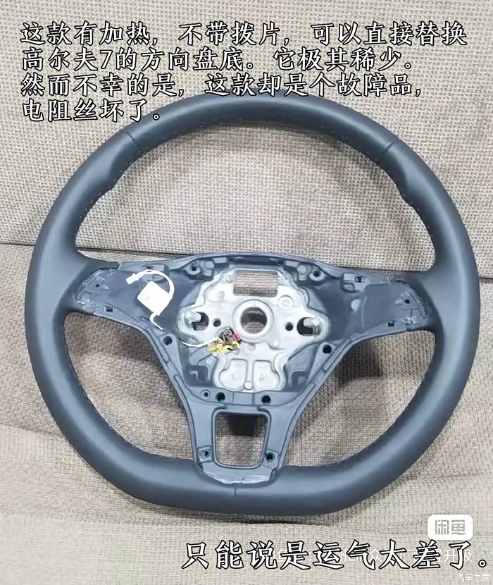 只能说运气这次真的不佳。但是能遇上,也是运气是确实要万分之一都多。遇上故障的话,是无法匹配的。就算空调面板刷出了界面,也是无法启动加热的。这次就是坏在了电阻丝上。这种方向盘真是太难找了。