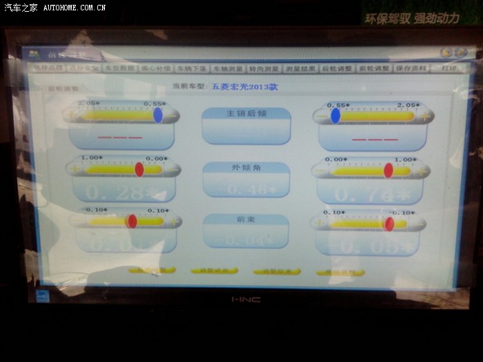 就在认为一切都将行至结束的时候,维修人员说少了两个螺帽,三个垫片,这让我们一通好找,结果是无良的卖家少发了一套,没办法,就在现场配螺丝,但非常不好配,他是那种10号的螺帽人家还是中丝,非常不好配,最后在卖螺丝大全地方配下的,一共花费5元!安装费用80元,打的满县城跑的买螺丝路费15元。在我出去的这段时间我让维修人员做了一下四轮定位,费用50元!结果分析,就是左前轮易跑偏,以下是调整好的数据: