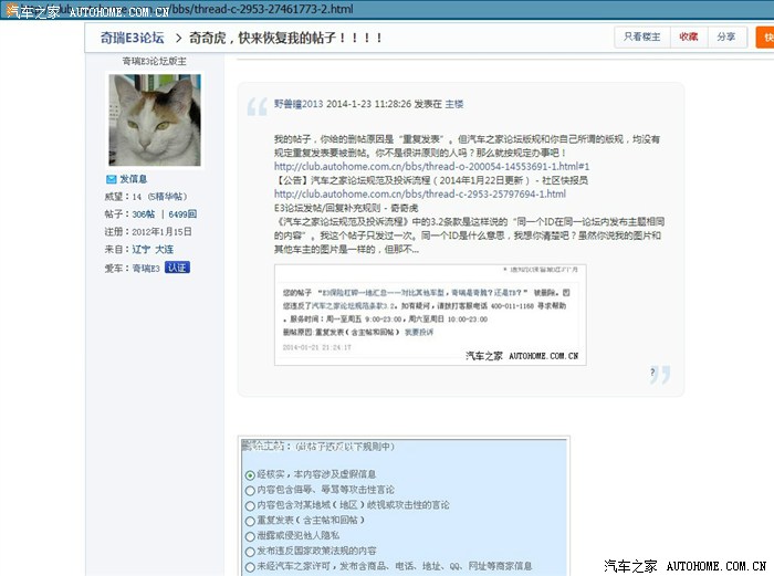 【公告】汽车之家论坛规范及投诉流程(2014年1月22日更新) - 社区快报员