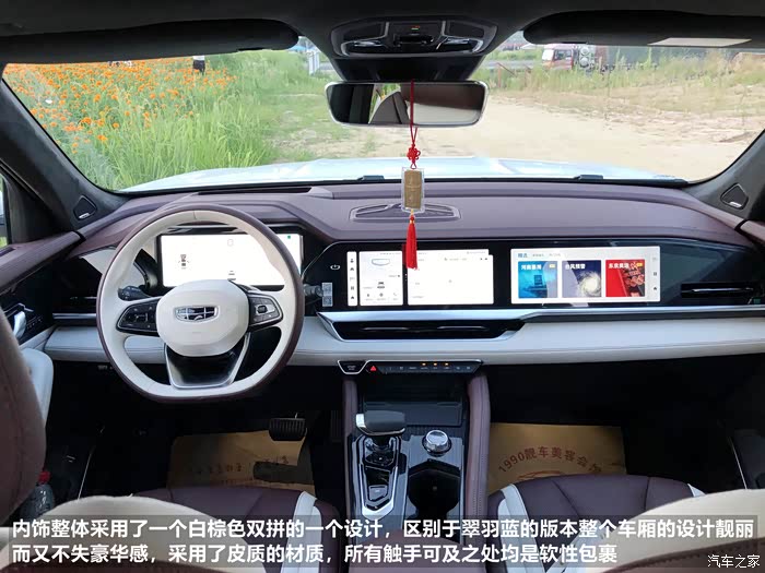 提起内饰,就不得不说星越L的内饰做工充满了豪华感与科技感,精致又不失时尚,典雅又兼备美感,星越L总共提供两款内饰选择,一款为白粽皮质内饰,另一款为黑蓝翠羽蓝专属内饰,个人其实是比较喜欢翠羽蓝的内饰,但是翠羽蓝仅在外观为翠羽蓝的车型上搭配,个人喜欢白色,所以还是选择了白棕色的内饰。