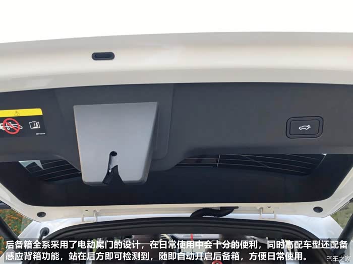 再来说说背箱的感受,整个背箱在星越L上的表现来说是非常的不错,进深足够,宽度足够,拆卸置物帘后整体高度也十分可观,可以说背箱空间足够的大,同时为了大家使用的便捷性,全系采用了电动尾门的设计,让你在日常使用及拿取物品时得到最大限度的方便,同时尾门还支持感应式开启,在尾门站立一会后,车灯闪烁,后退一步后,尾门会自动开启,这样如果双手拿取物品的时候会非常的方便。不得不为良心设计而点赞。