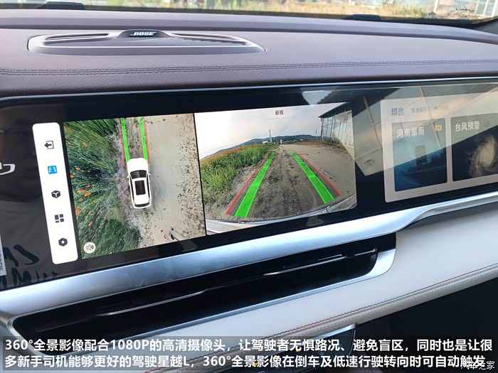 星越L全车搭载了5个毫米波雷达、12个超声波雷达、4个高清环视摄像头,1个单目摄像头,1个车内摄像头,同时具有行车记录仪专用接口,可以搭配专车专用行车记录仪。