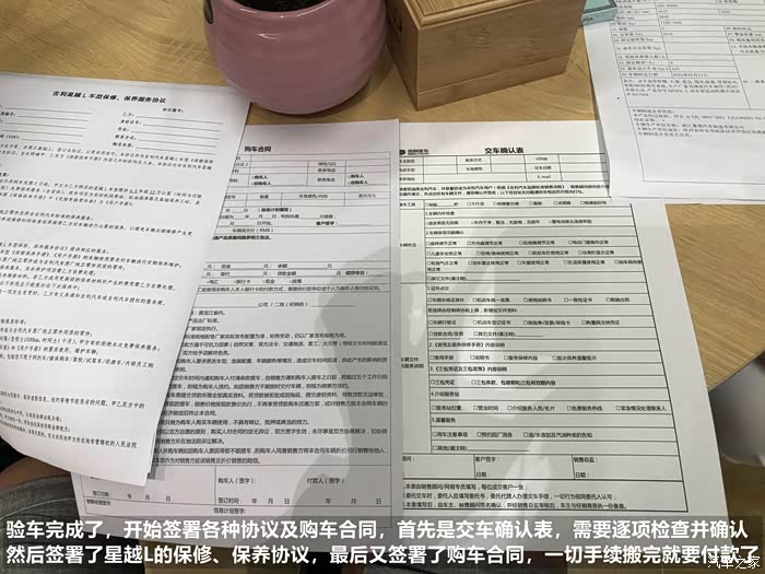 我这里简单给大家拍了一些验车和相关手续的照片,大家可以作为参考,另外4S这边针对星越L提车的车主还做了交车仪式,恭喜成为尊贵的星越L车主。