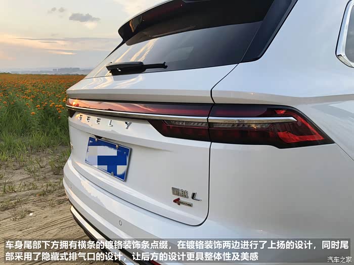 交车仪式结束了,下面开始我的个人秀,果断带着星越L,来到我们当地一个比较美丽的花海景点,开始我的提车作业,首先要跟大家先介绍下外观,之前文章开头已经介绍一部分了,重复的部分不去说了,来跟大家详细说说车身尺寸及外观的细节部分吧。