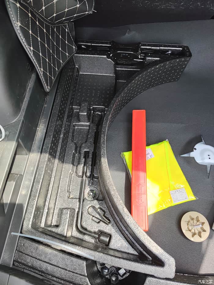 打开后就可以看到备胎和工具了,拍照片的时候已经把工具和备胎拿出来了。