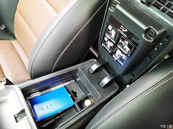 扶手箱上面是一个空气净化装置,扶手箱深度还不错,能放不少的东西