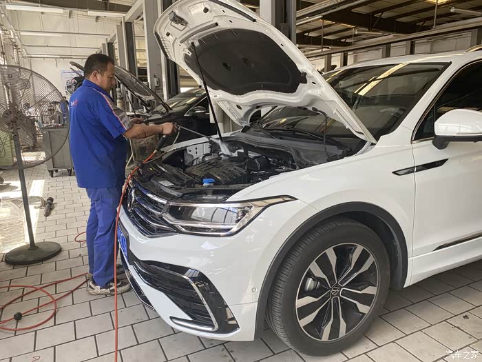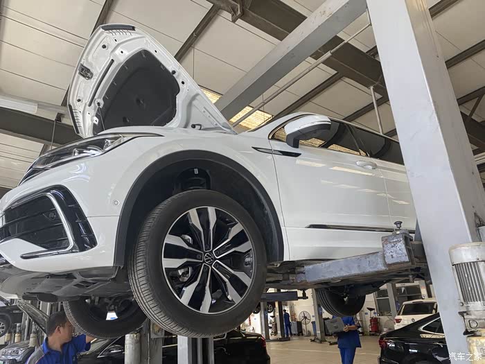 底盘的检测也是不能忽视的,我的大白途观L刚经历过长途跋涉和河滩冲浪,一定是要认真检查一下底盘的,保养的师傅给我到处细致的检查了一下,说底盘完好无损、状态很好,大白给力,这下放心了。