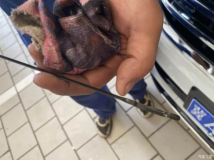 抽出来的机油又黑又浑浊了。