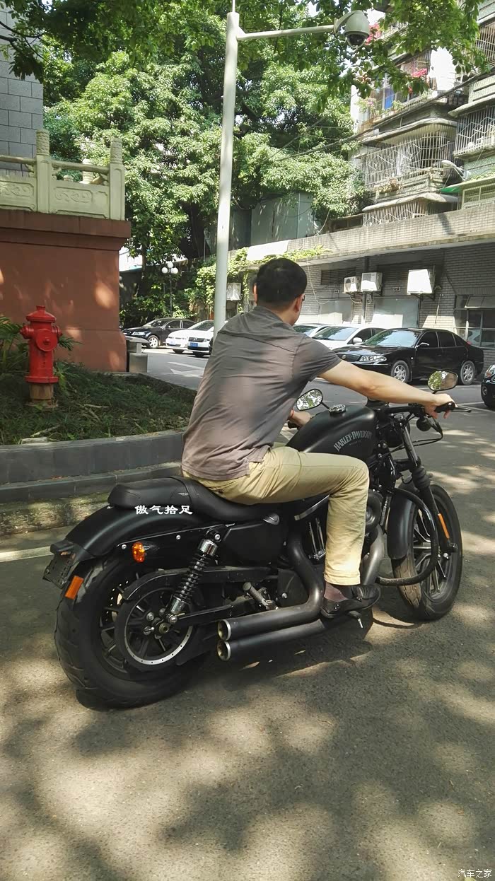 这款是883硬汉,在750没投产前算哈雷的入门级车型,883ML的排气量,风冷双缸发动机,粗犷的外形,浑身散发这不羁的气息,一切都显得很MAN,让你瞬间有骑上去的冲动。。。。这不是机车,是毒药(记住哥这时的穿着