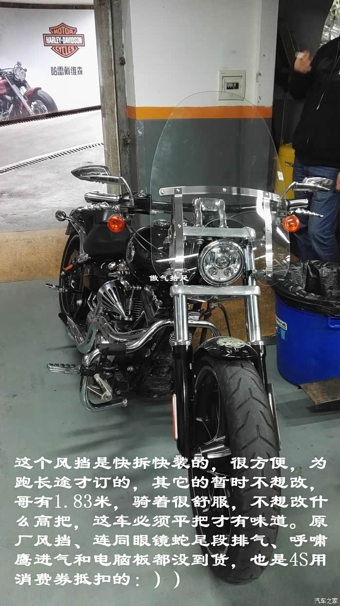 这个风挡是快拆快装的,很方便,为跑长途才订的,其它的暂时不想改,哥有1.83米,骑着很舒服,不想改什么高把,这车必须平把才有味道。原厂风挡、连同眼镜蛇尾段排气、呼啸鹰进气和电脑板都没到货,也是4S用消费券抵扣的
