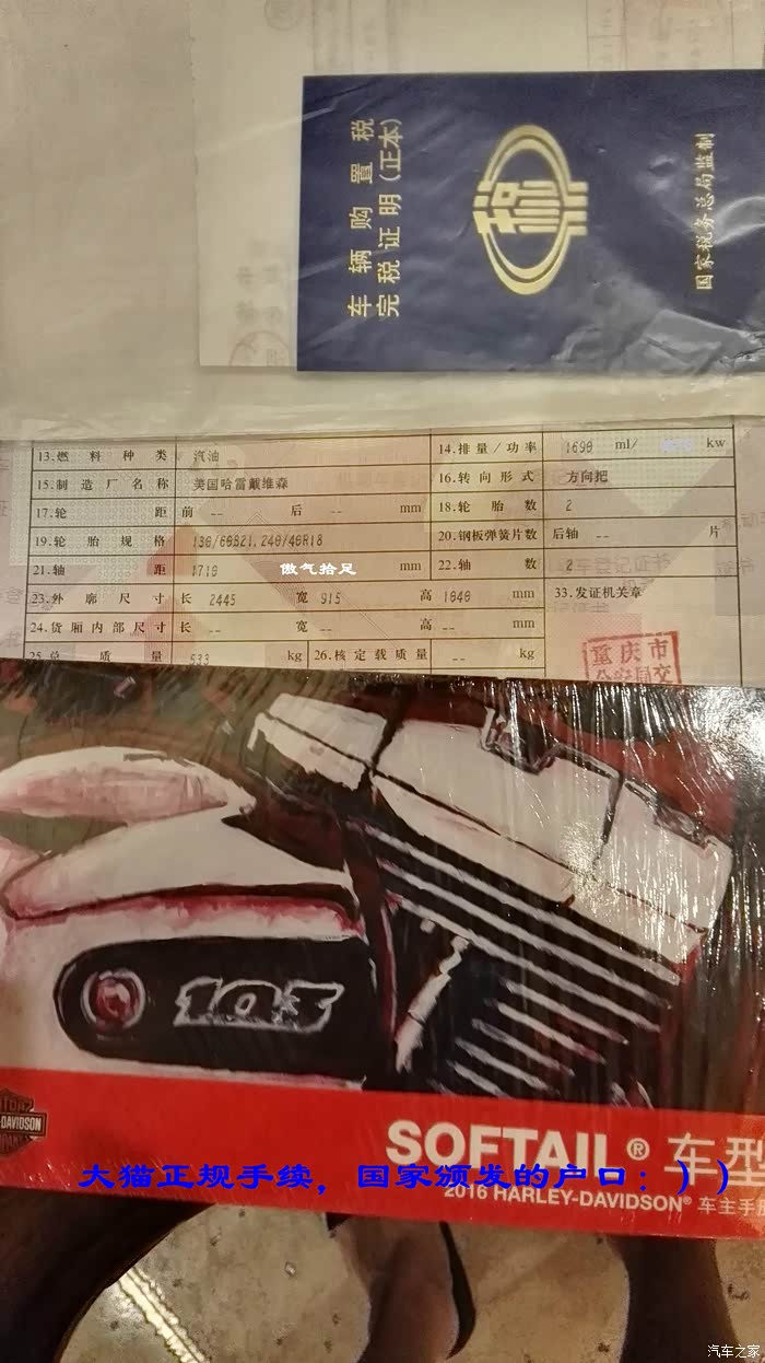 由于是重庆第一台103发动机的突破者,车管所要录光盘,整整等了半个月才办好牌,4S通知去提车的当天那是相当的激动。