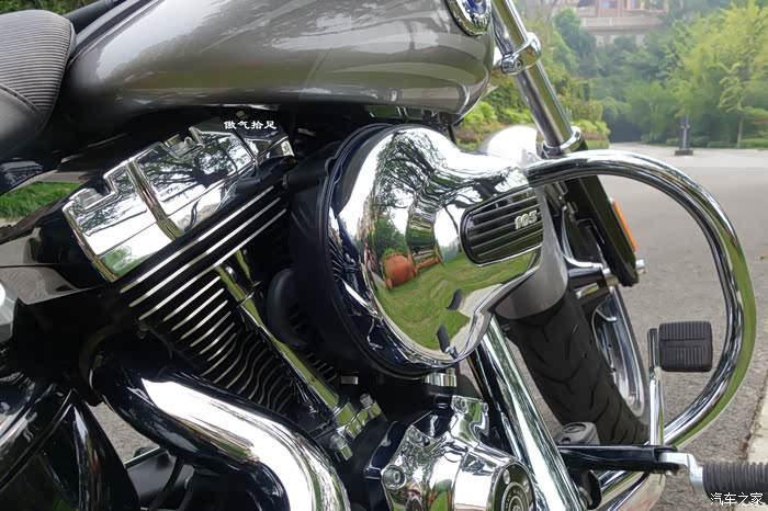 这是哈雷摩托的核心,风冷大排量双缸,103表示103立方英寸的排量,等于1690毫升排量,比许多家轿排量都大,力量只能用暴力来形容。