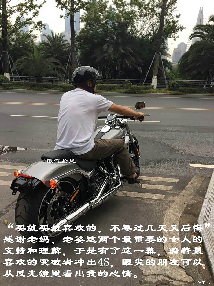 “买就买最喜欢的,不要过几天又后悔”感谢老妈、老婆这两个最重要的女人的支持和理解,于是有了这一幕,骑着最喜欢的突破者冲出4S,眼尖的朋友可以从反光镜里看出我的心情。