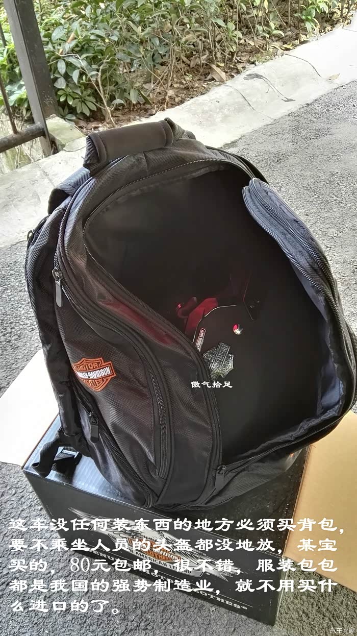 这车没任何装东西的地方必须买背包,要不乘坐人员的头盔都没地放,某宝买的,80元包邮,很不错,服装包包都是我国的强势制造业,就不用买什么进口的了。