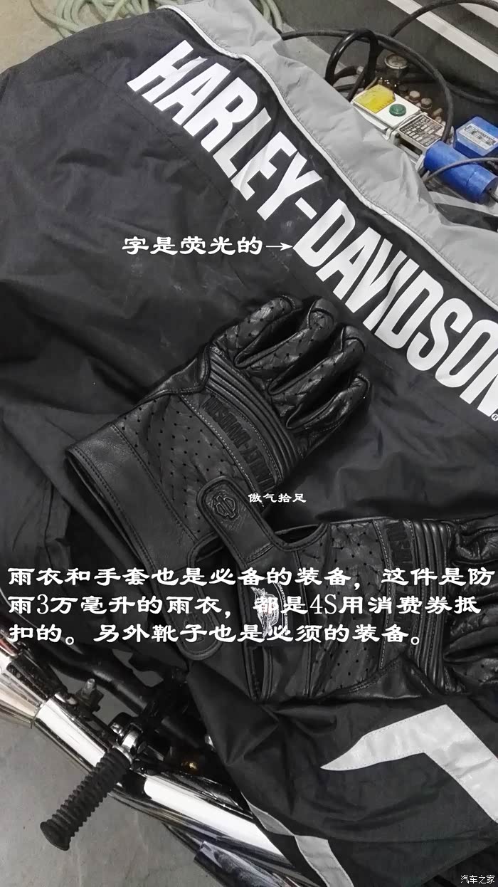 雨衣和手套也是必备的装备,这件是防雨3万毫升的雨衣,都是4S用消费券抵扣的。另外靴子也是必须的装备。