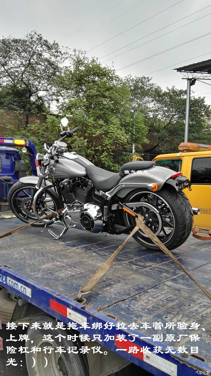 接下来就是拖车绑好拉去车管所验身、上牌,这个时候只加装了一副原厂保险杠和行车记录仪。一路收获无数目光