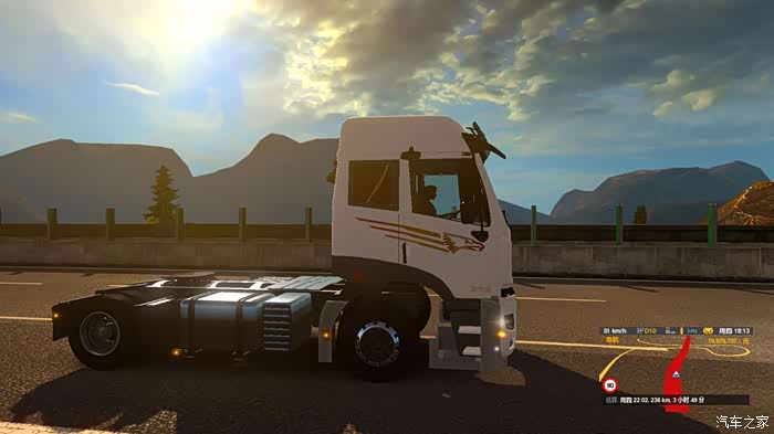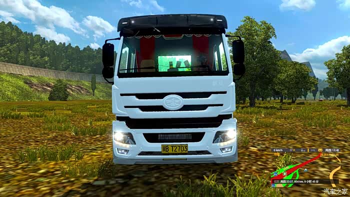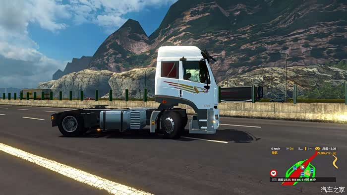 在游戏里如果开的mod比较多,或者有的mod有一些瑕疵,与游戏发生冲突,会出现游戏闪退的情况,这个一汽青岛的卡车做的还不错,在游戏里不会发生冲突,保证了游戏地完美的运行,这款青岛卡车的外观很经典,记得在我的小时候,就常能看见这款拖头,很亲切的感觉,即使现在的道上,在运行的一汽青岛卡车也不少,只不过比原来的产品性能更加成熟,外观颜值更高罢了。在游戏里体验驾驶拖头的感觉,车高,视野更开阔,但是同时车进气隔栅下方的盲区会增加很多,所以开这种大车的时候,要更加注意四处瞭望,保持车距。不论在游戏中还算在生活中,在市区行驶的时候,一定不要超速,按照规定的速度行驶,否则这么大的体积急刹车困难,很容易刹车不及时导致事故。说回游戏,这个一汽青岛卡车的mod总体来说还不错,外观几乎没有破绽,完全符合真车的设计,虽然与游戏里精心设计的车型相比,还算有所欠缺,不过对于国产拖头的mod来说,已经很不错了,知足者常乐!内饰也完全按照了实车的设计,一汽LOGO的方向盘是精心制作的,仪表盘和中控台都是经过重新设计的,但是脚垫是MAN车型的,可能是设计的时候没有注意,这里有点破绽,还有就是车轮的传动轴貌似没有做出来,让传动轴那个位置空出了很多的空间,看着有点假了。