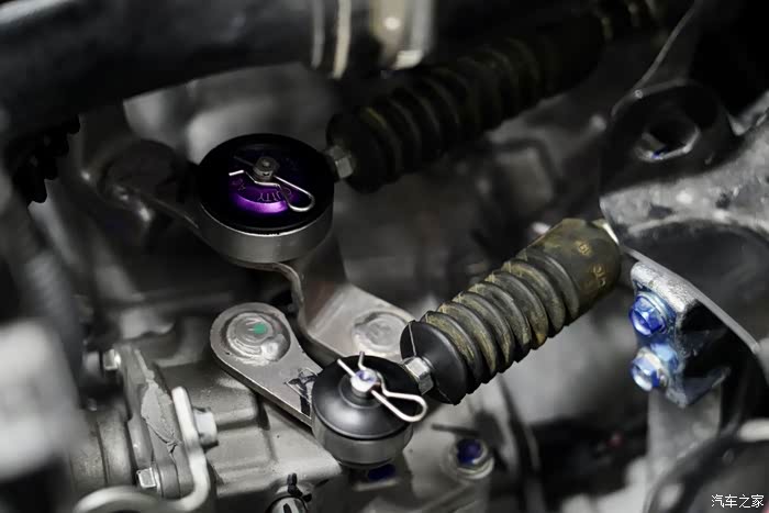 改装快排的原理其实也是如此,首先改变排档的杠杆比,减少原厂的排档机构上的缓冲装置,使得换挡手感更加清晰。原厂排档机构底座上的橡胶缓冲,档位拉线球头上的橡胶缓冲。都是为了使用寿命还有减少换挡的震动而设计的。