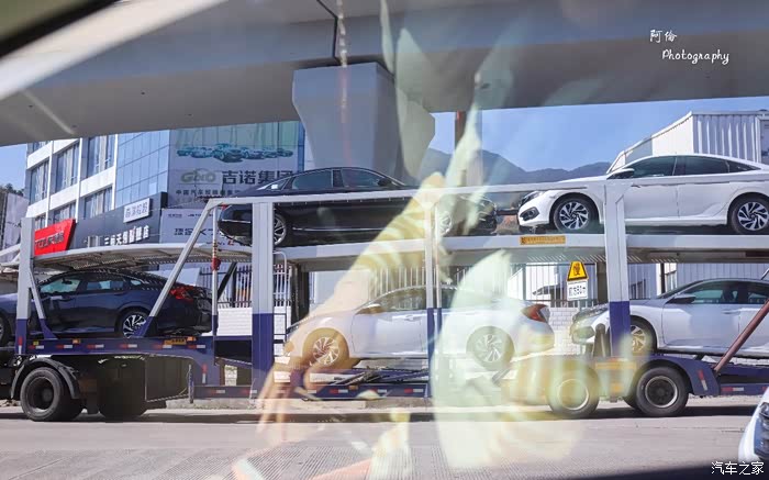 这时……正停在一个红绿灯路口等待,媳妇发现路边停着一辆载满新思域的大货车,随口说了一句,万达有地下车库啊,并按下了快门……