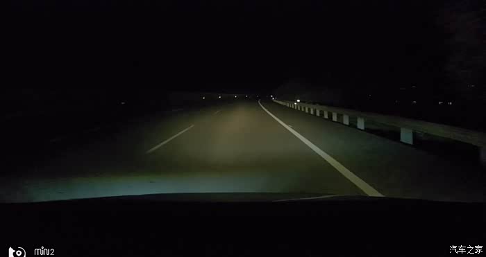 LED远光灯跑高速夜路的视野如图~可以看到高速反光点的反光距离明显长于卤素光源~不言而喻~