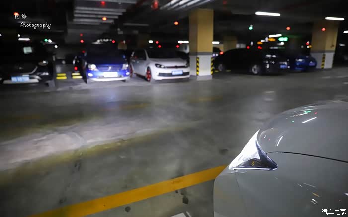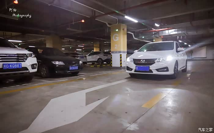 在地下停车场里打开近光灯能清晰的看到灯光的照射范围,不会对对向车辆的驾驶室造成影响,甚至连引擎盖都不会直接照射