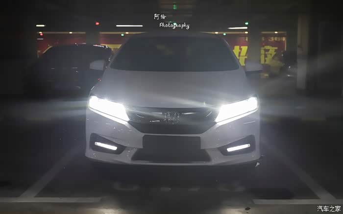 其实这么一看,锋范的前灯真的很大气,但奈何原车的卤素蜡烛灯太昏暗,使得整体效果出不来,改完LED后,简直容光焕发