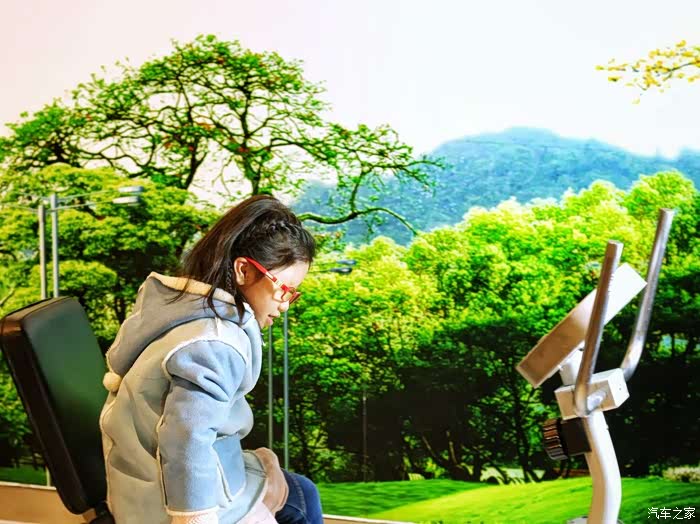 女儿尽可能要把所有她觉得有意思的东西都玩一下,不过什么东西都要排排队,唯独这个脚踏车,不需要排队。女儿自然不肯放过,结果只能蹬到脚踏扶不到把手,依然让她兴奋好久,终于有个她能搞懂的东西了。