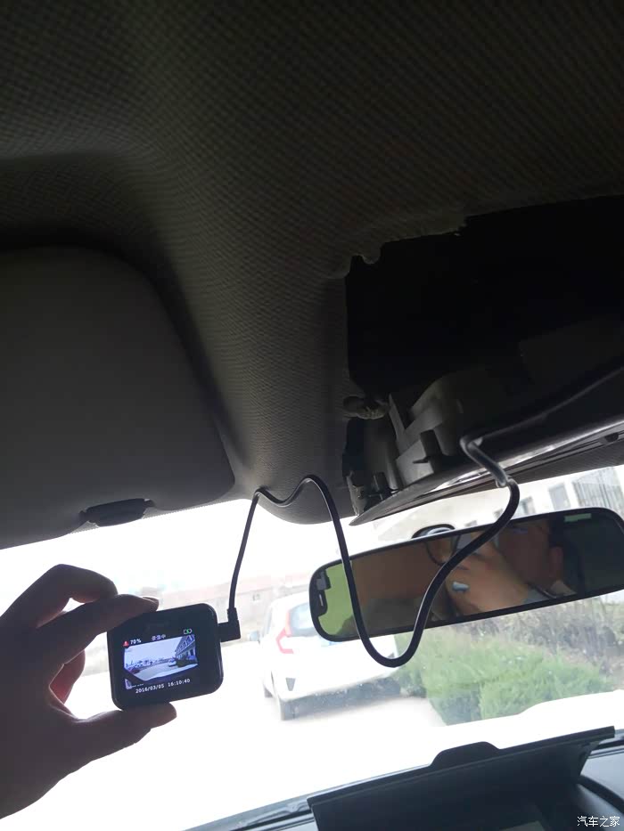 接上电试试,可以。忘了撕下记录仪摄像头的保护纸,还纳闷为什么图像是这样的,累晕了(扣阅读灯总成的时候需要费点力气)