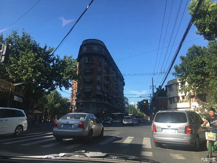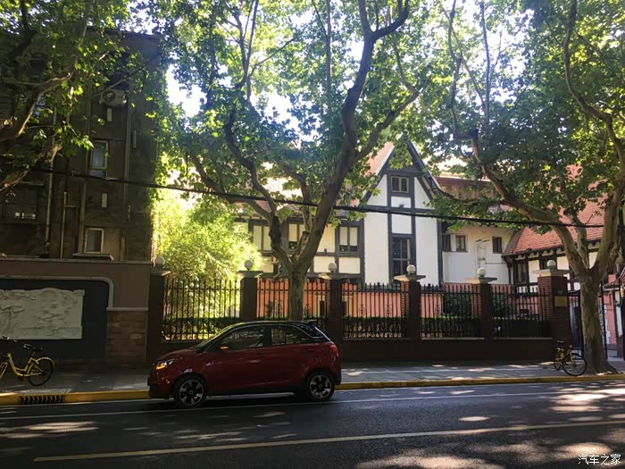 开着电咖一路沿淮海路向东,女友一路感叹市区的海派风情,洋房梧桐,路边的咖啡馆和酒吧。还路过了著名的武康大楼,原名叫诺曼底公寓,解放前很多文艺界的名人名流都住在这个三角形的大楼里,像赵丹、王人美、秦怡、孙道临等等一些当年的著名电影明星都曾经住在这里。这要是放在现在,一栋楼里面住了这么多大明星,估计娱记要每天把楼下堵得水泄不通了吧。