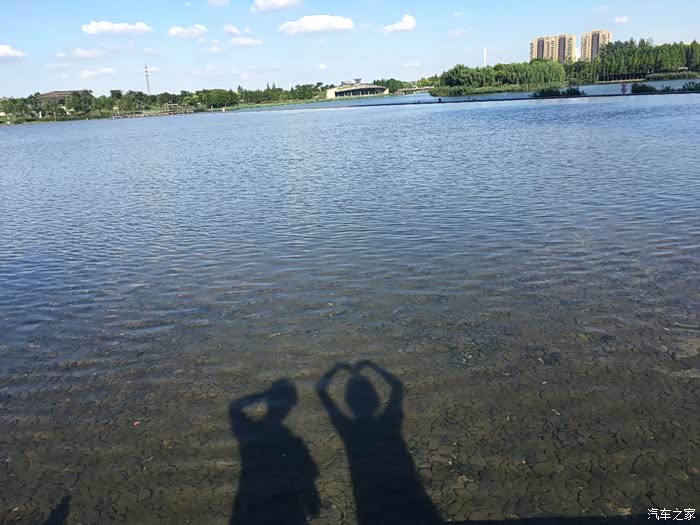 第一次开车上路就这么顺利,女友很高兴,水边留个倒影庆祝一下!