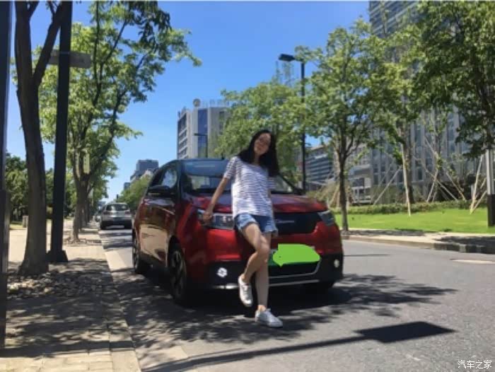 不过车虽然女友选的,但当时她驾照还没有下来,一直手痒也没机会上路,好不容易熬到考出了驾照成了本本一族,女友急不可待要让我这个老司机教她开着电咖上路,我当然是义不容辞。周末一早就出发,先跟电咖来个标准车模照。女友是个高个子,170,所以小咖虽然是同级别车里最高的,但是在女友旁边也显得娇小了。