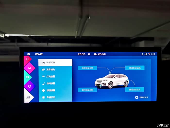 坐在后排可通过后排座椅自带的5英寸中央扶手智能液晶显示屏,实现歌曲切换、音量、氛围灯亮度调节、天窗控制等功能,媒体控制主要是本车的所有音响等类的控制,让媳妇印象深刻的是座椅的调节,因为WEY VV7座椅控制的内容非常丰富,包括左侧和右侧的座椅调节、腰托、按摩和通风加热,极大的提升了后排科技感知及智能化操控体验。媳妇坐在后排打开座椅按摩后就不想再到前排也坐了,一边按摩一边喃喃自语道:确实比家里的按摩椅舒服啊···